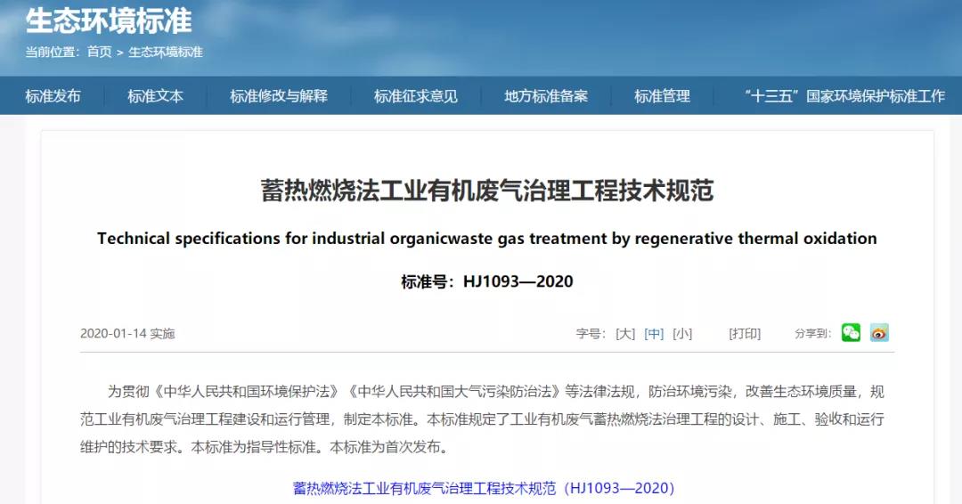 2020年1月14日實施的《蓄熱燃燒法工業(yè)有機(jī)廢氣治理工程技術(shù)規(guī)范》(HJ1093—2020)是RTO行業(yè)的國家技術(shù)規(guī)范,目前各地均開展VOCs深度減排,進(jìn)一步增加了對RTO技術(shù)和應(yīng)用的需求。