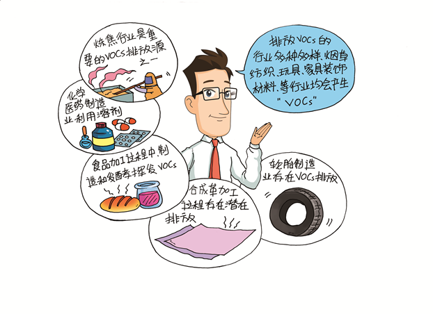 其他行業(yè)如:煙草行業(yè)、紡織品行業(yè)、玩具行業(yè)、家具裝飾材料、汽車配件材料、電子電氣行業(yè)以及洗滌劑、清潔劑、衣物柔順劑、化妝品、辦公用品、壁紙及其他裝飾品、農(nóng)藥、橡膠、精細化工等行業(yè)均會產(chǎn)生VOCs。