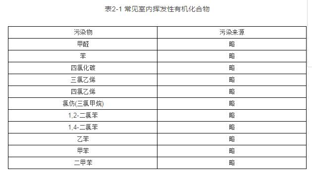 世界衛(wèi)生組織工作小組所發(fā)表的《就對室內(nèi)空氣污染物(根據(jù)1984年認(rèn)識水平)的關(guān)注所達(dá)成的共識》報告中列示了室內(nèi)環(huán)境中通??烧业降膿]發(fā)性有機(jī)化合物(見表2-1)。